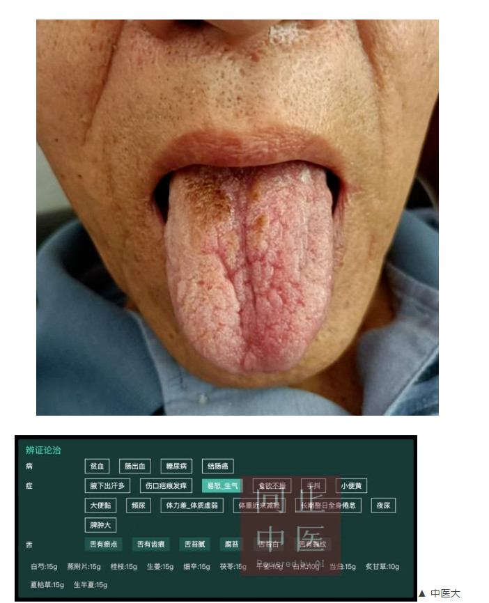 四诊就诊时症见:容易生气,生气会手抖。什么都不爱吃,就爱吃粥。大便成形,转黄,未见红色。没有五心烦热了。习惯4点醒。空腹血糖4.7。