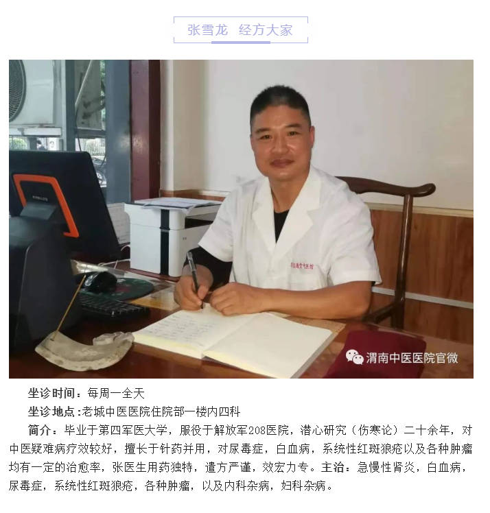 张雪龙大夫现在陕西省渭南市同盛兴中医馆坐诊(周二,周四,周天坐诊)